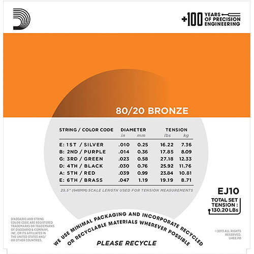 D’Addario’s lightest gauge of acoustic strings, EJ10s are ideal for beginners or players who prefer a softer tone and easy bending.