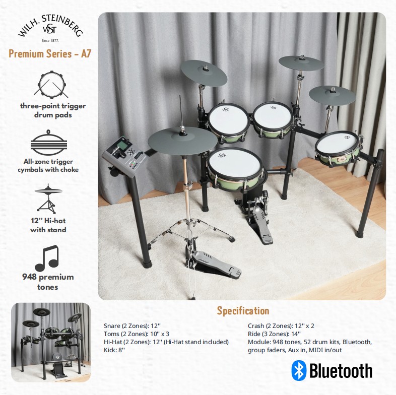 Wilh.Steinberg Premium Series WST Electronic Drum A7 with Drum Accessories